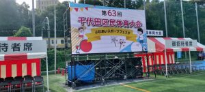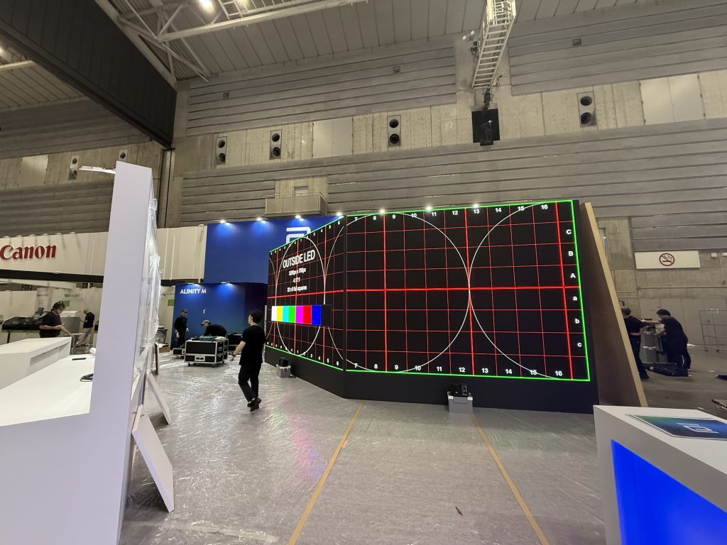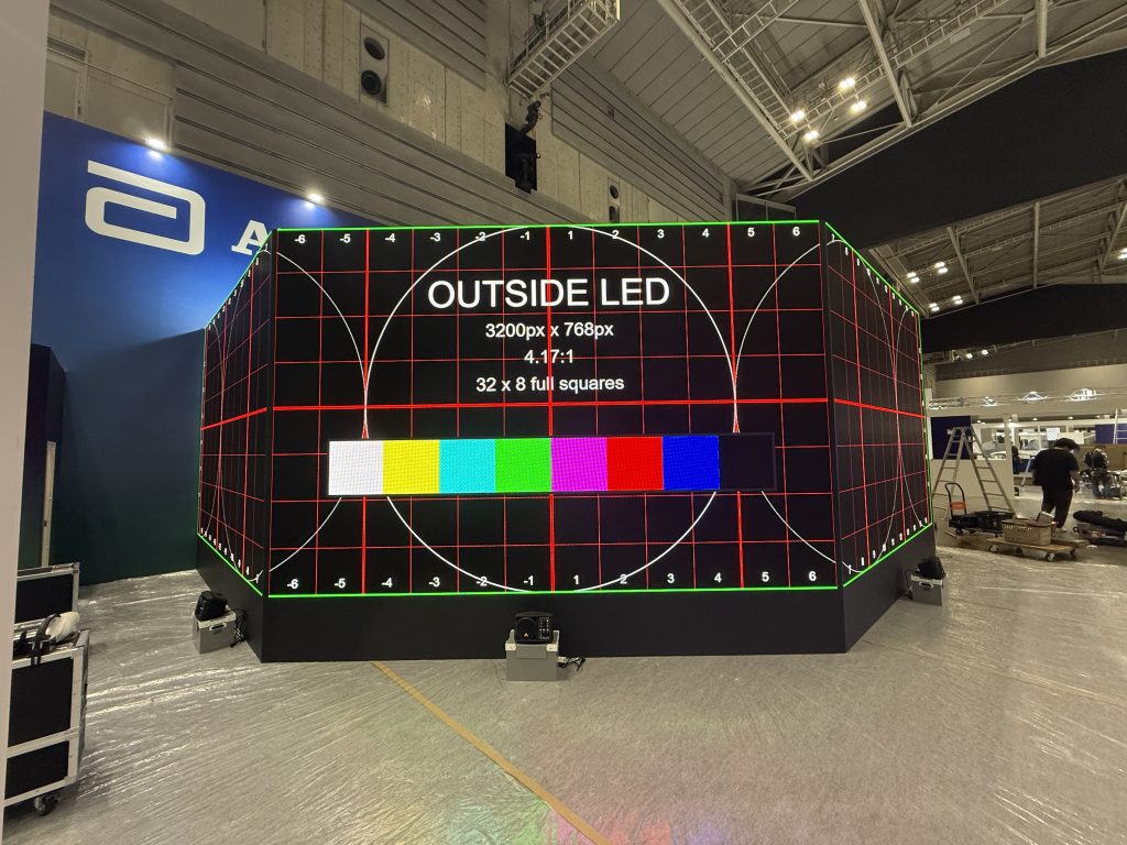 弊社は、LEDディスプレイ、をレンタルしました。今回は角度をつけての設置を行いました。