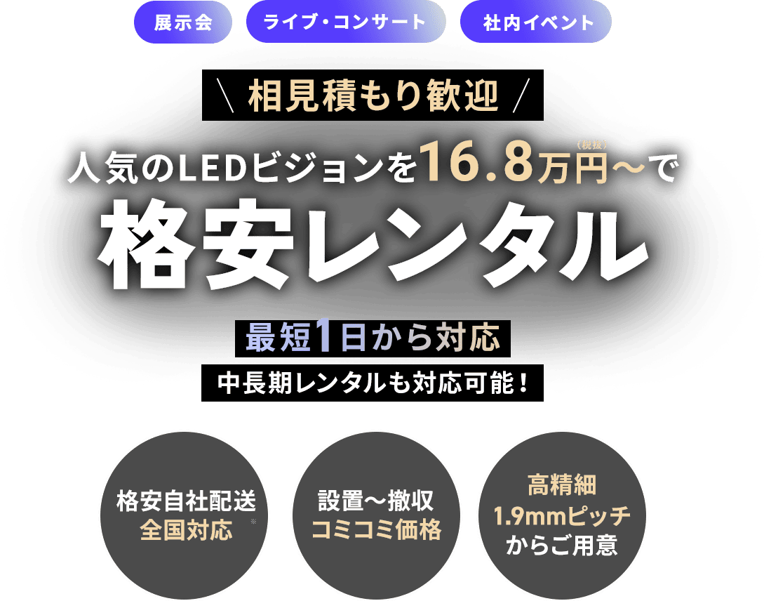 費用はレンタルするLEDの内容によるため、一度見積もりをご依頼ください。